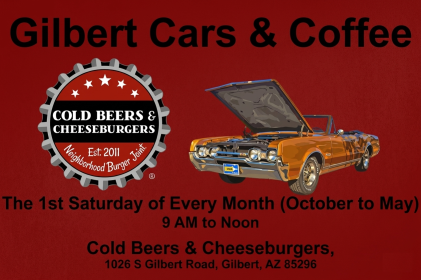 Join us for Cars and Coffee at Cold Beers & Cheeseburgers in Gilbert AZ.